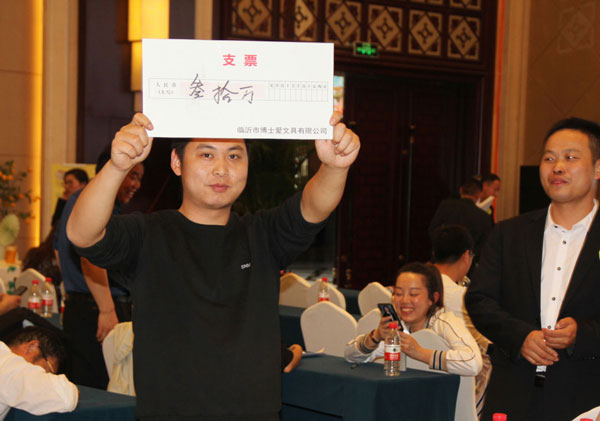 多年来的品质传承,让博士爱文具在粘土市场上拥有极佳口碑。一路走来,离不开每一位经销商的不离不弃,风雨同行!晚宴上,博士爱集团对多年来支持与关爱的老客户们颁发了奖项,对优秀的经销商进行了表彰。相信在接下来的时间,博士爱集团将会不断发展,销售业绩更上一层楼!