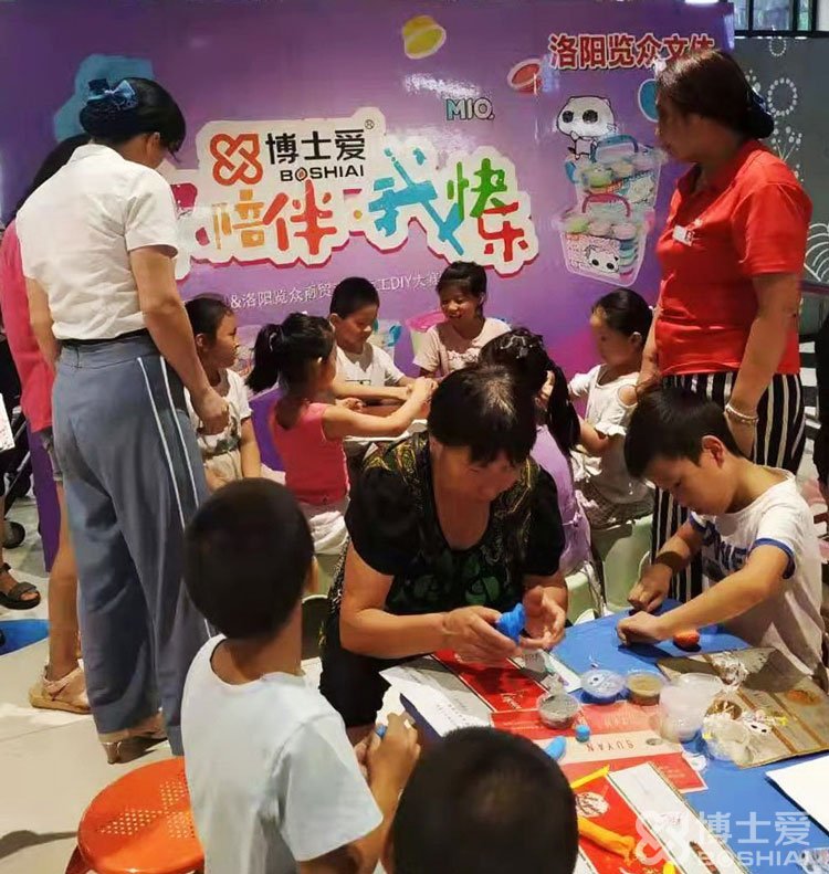 8月10日上午,河南洛阳世纪隆超市里热闹非凡,博士爱文具携手洛阳览众商贸举行的以“你陪伴我快乐”为主题的超轻粘土手工DIY大赛正在如火如荼的进行中。